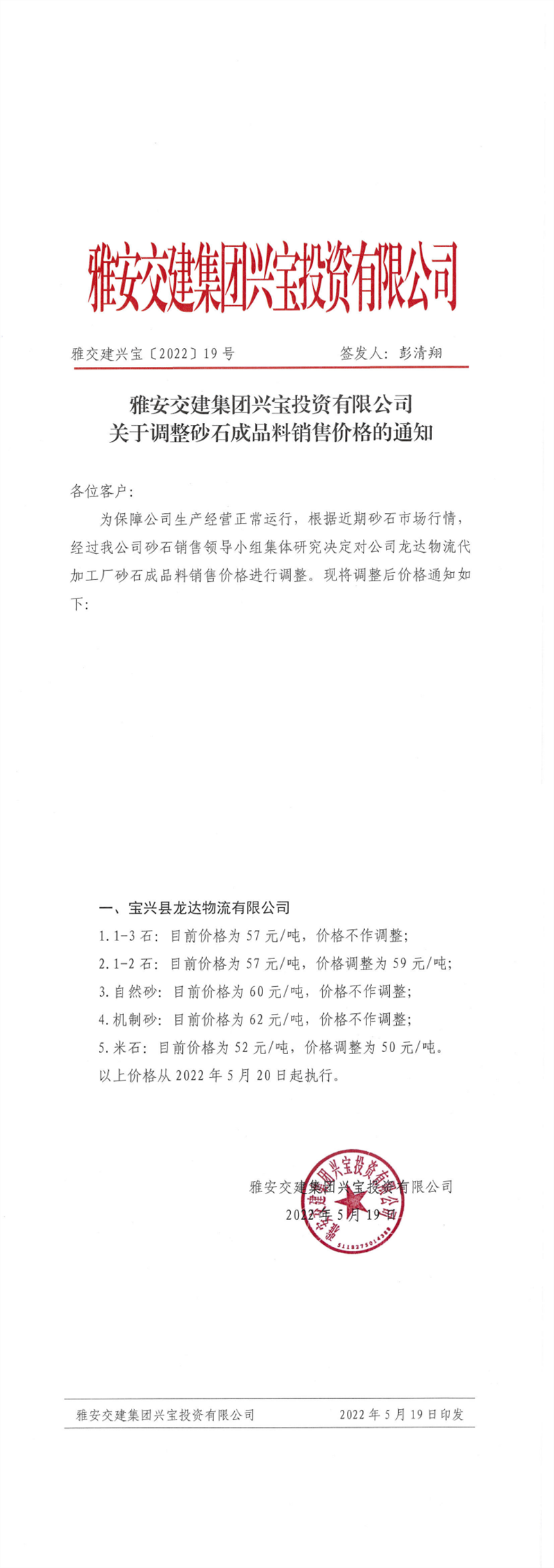 ÑŰ²½»½¨¼¯ˆF(tu¨¢n)ÅdŒš¹«Ë¾êP(gu¨¡n)ÓÚÕ{(di¨¤o)Õûɰʯ³ÉÆ·ÁÏäNÊÛƒr(ji¨¤)¸ñµÄ֪ͨ-2022-5-19
