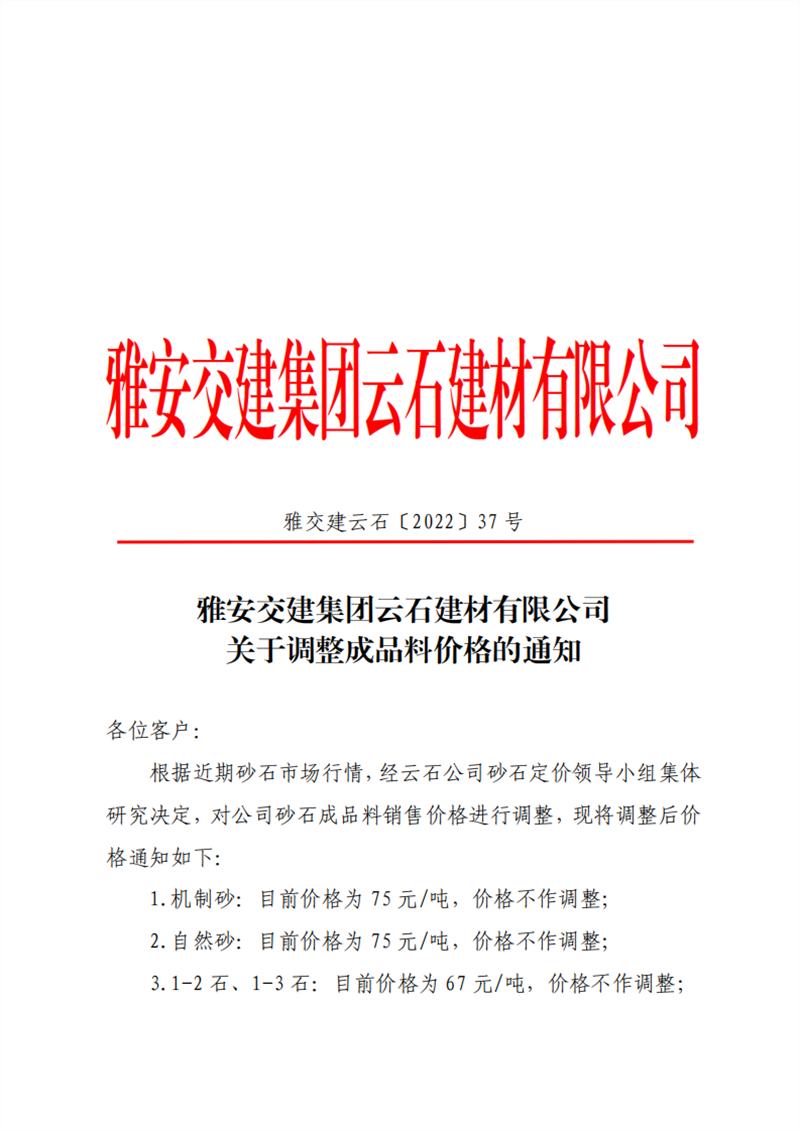 ÑŰ²½»½¨¼¯ˆFÅdŒš¹«Ë¾êPÓÚÕ{(di¨¤o)Õûɰʯ³ÉÆ·ÁÏäNÊÛƒr¸ñµÄ֪ͨ-2022-5-19