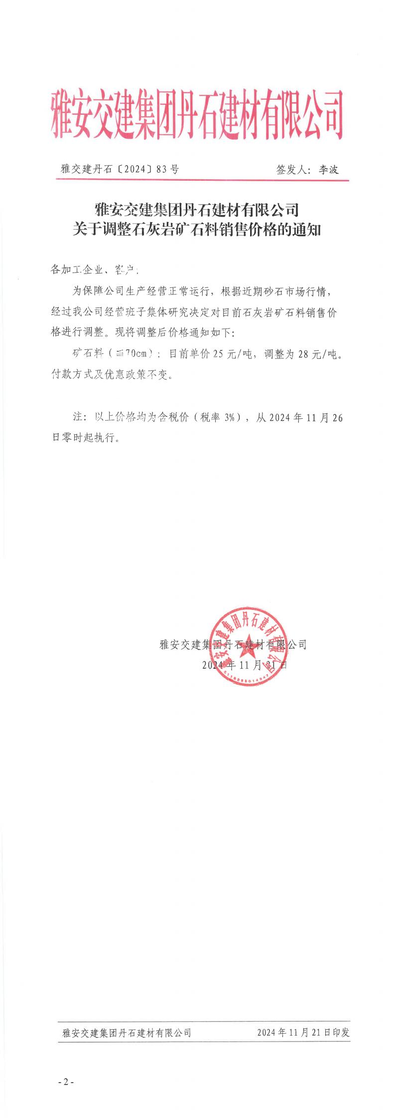 ÑŰ²½»½¨¼¯ˆF(tu¨¢n)µ¤Ê¯¹«Ë¾êP(gu¨¡n)ÓÚÕ{(di¨¤o)ÕûµVʯÁϵÄ֪ͨ£¨2024-11-22£©